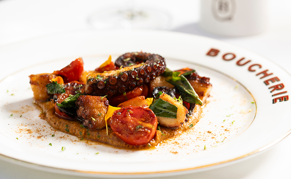 Fiel a su nombre, La Grande Boucherie rinde homenaje a la tradición carnicera francesa con sus célebres Spécialités du Boucher. Entre ellas destacan el Prime Steak Frites, el Boeuf Bourguignon y el Filet Mignon au Poivre, consolidando su reputación como un destino imprescindible para los amantes de la carne.