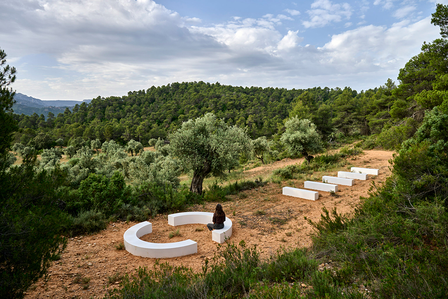 Ubicado a menos de tres horas de Barcelona y rodeado por los imponentes paisajes del Parque Natural de los Puertos de Tortosa-Beceite, el Solo Sculpture Trail se despliega a lo largo de cinco kilómetros entre viñedos, campos de olivos y bosques de carrascas. Lejos del cubo blanco, las obras se encuentran —más que se exhiben—: aparecen como presencias silenciosas que invitan a la contemplación, la pausa y el diálogo con el entorno.